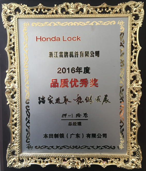 2016年品質(zhì)優(yōu)秀賞
